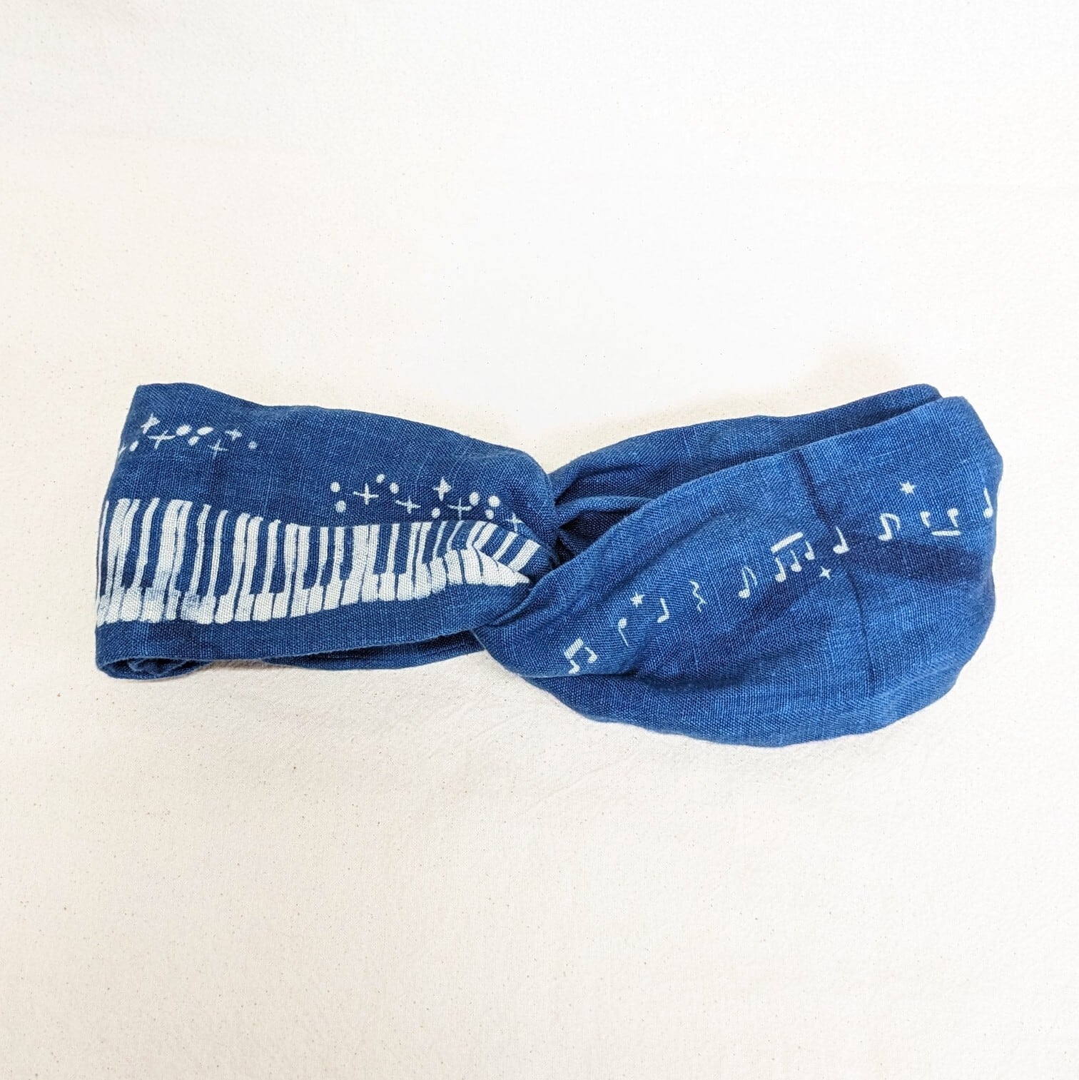 綿麻素材を使用しており、ピアノと音符の柄が左右に流れるように施された、軽やかで楽しい雰囲気のヘアバンドです。日常使いはもちろん、様々なスタイルと合わせて、楽しんで頂けたら幸いです♪