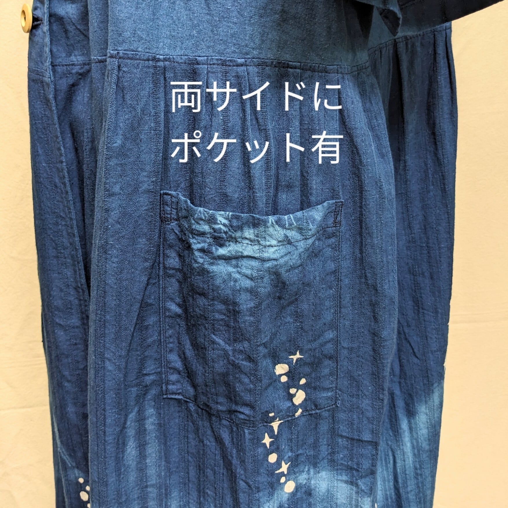 上部は綿麻生地、下部と袖は縦縞の細かい模様の綿麻生地、