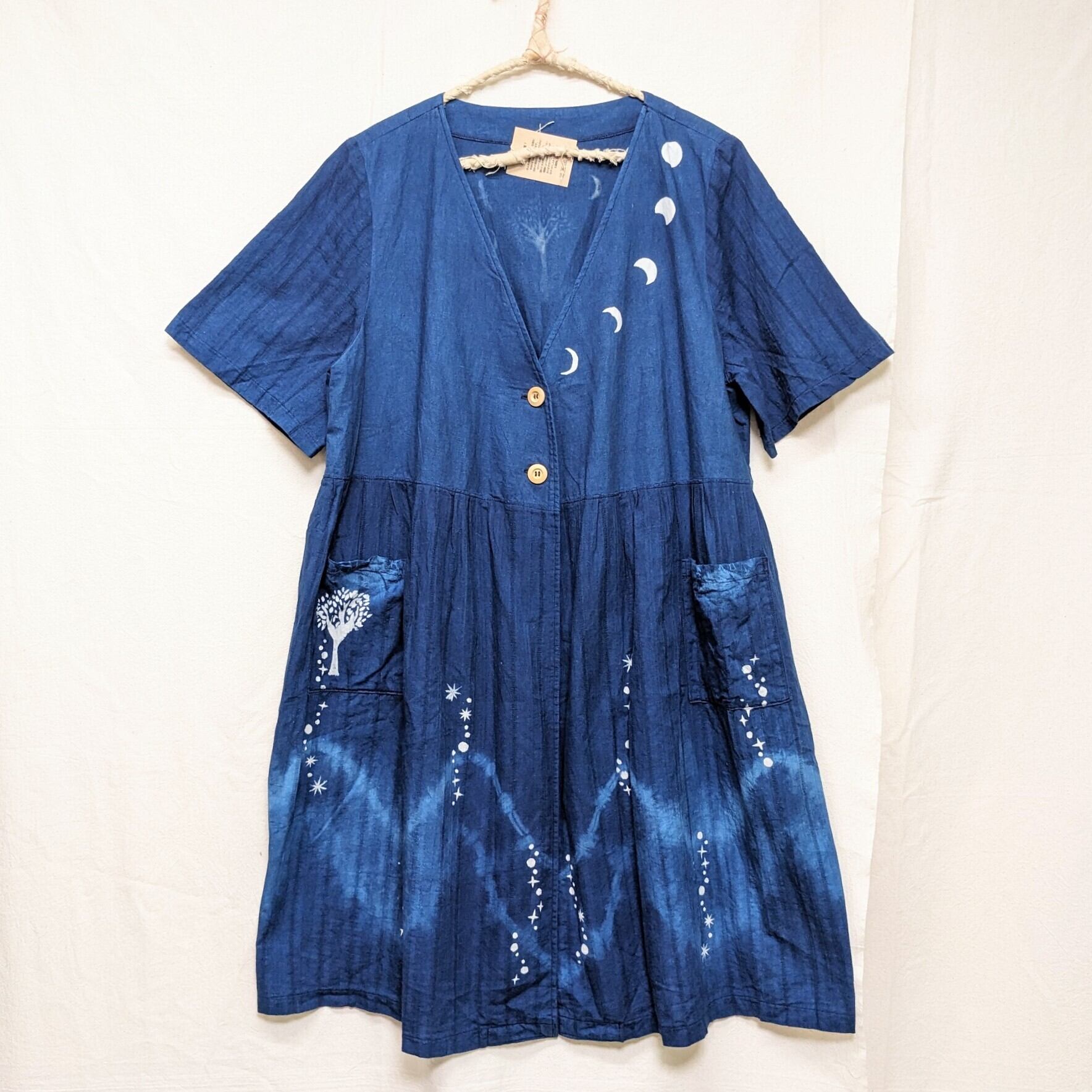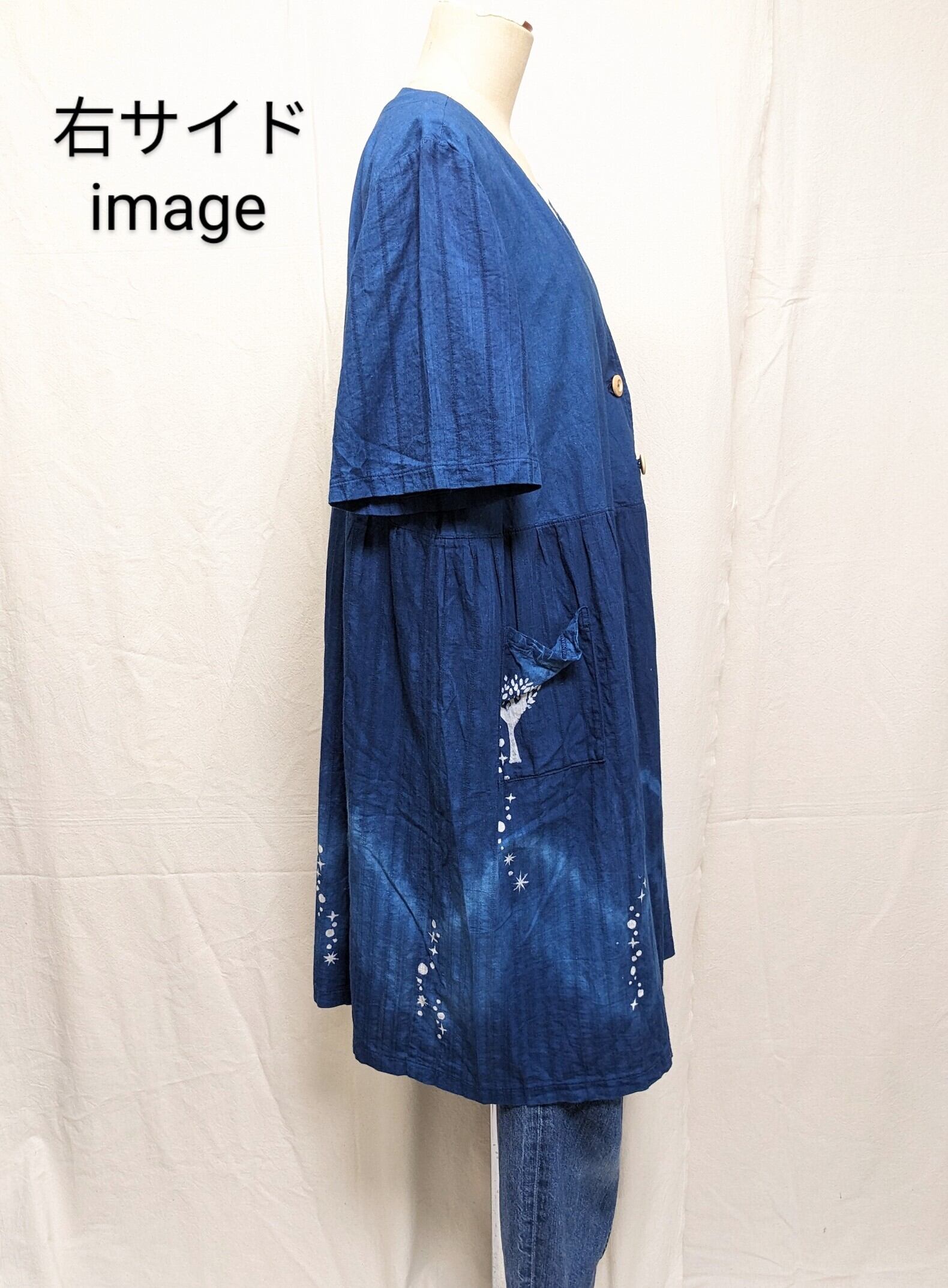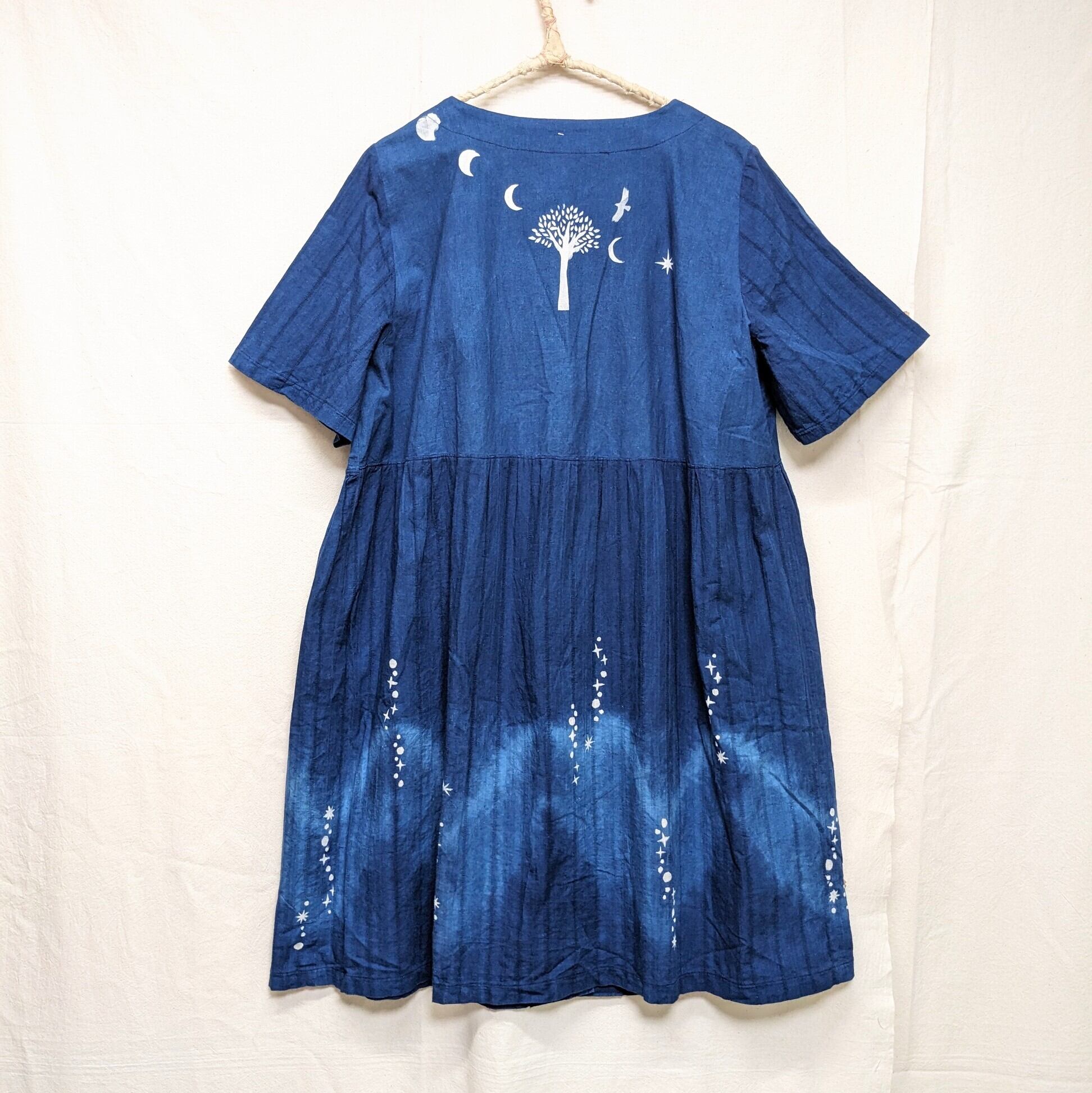 襟ぐりの左側、後ろと前へとつながる月の満ち欠けが素敵なデザインです。