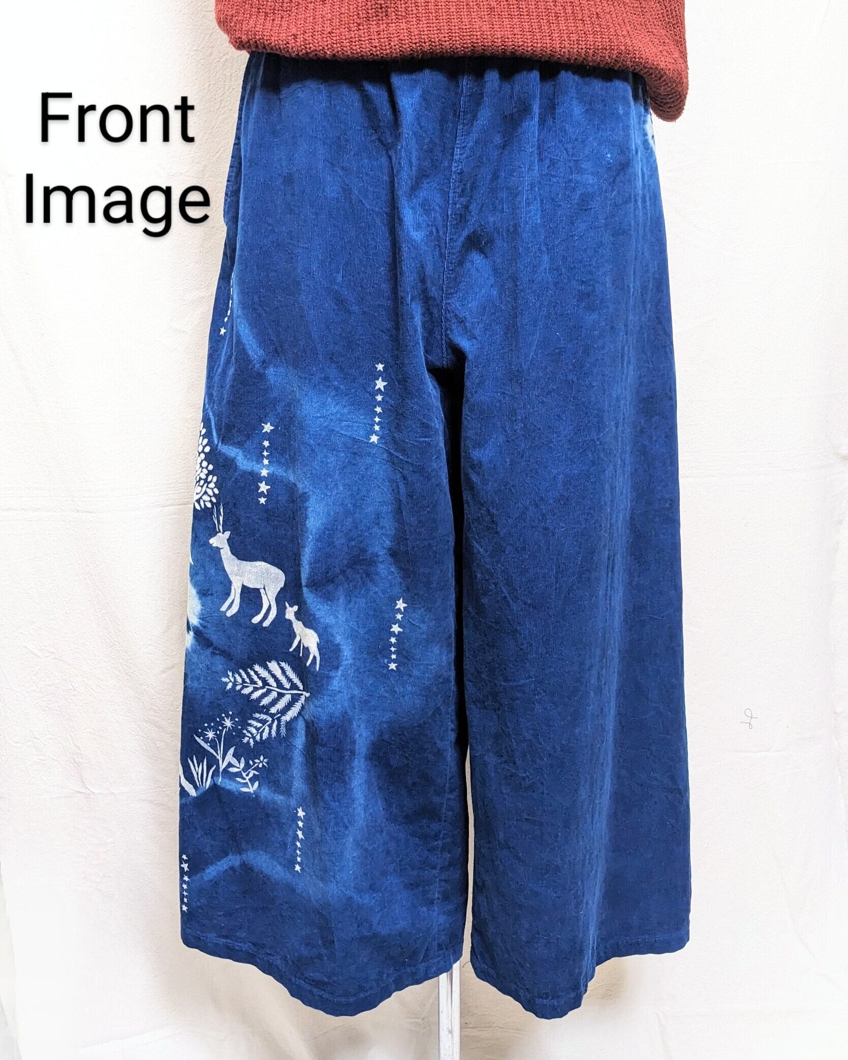 星降る夜の森の動物たちの様子を覗いているような絵柄の楽しいパンツです。