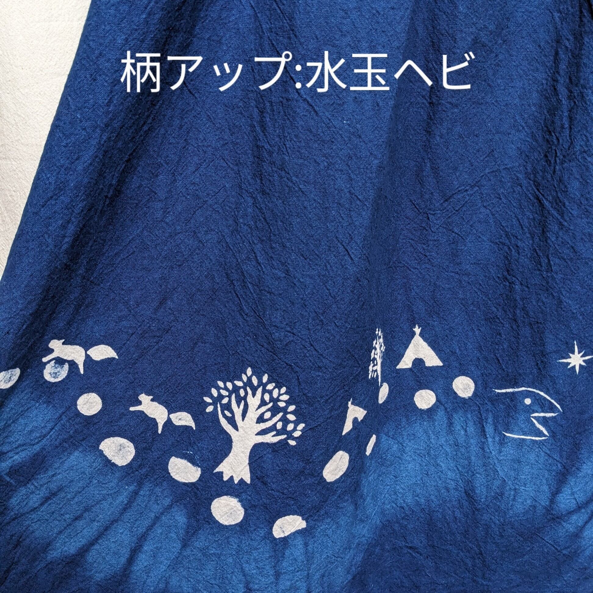 ☆星柄・〇水玉・縞々の3匹のヘビの背中が森となっていて、キャンプをしたり、動物たちが遊んだりしているという、不思議で楽しい絵柄になっています。